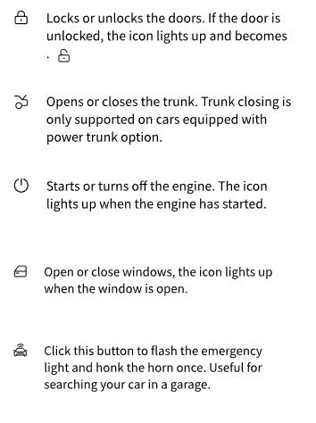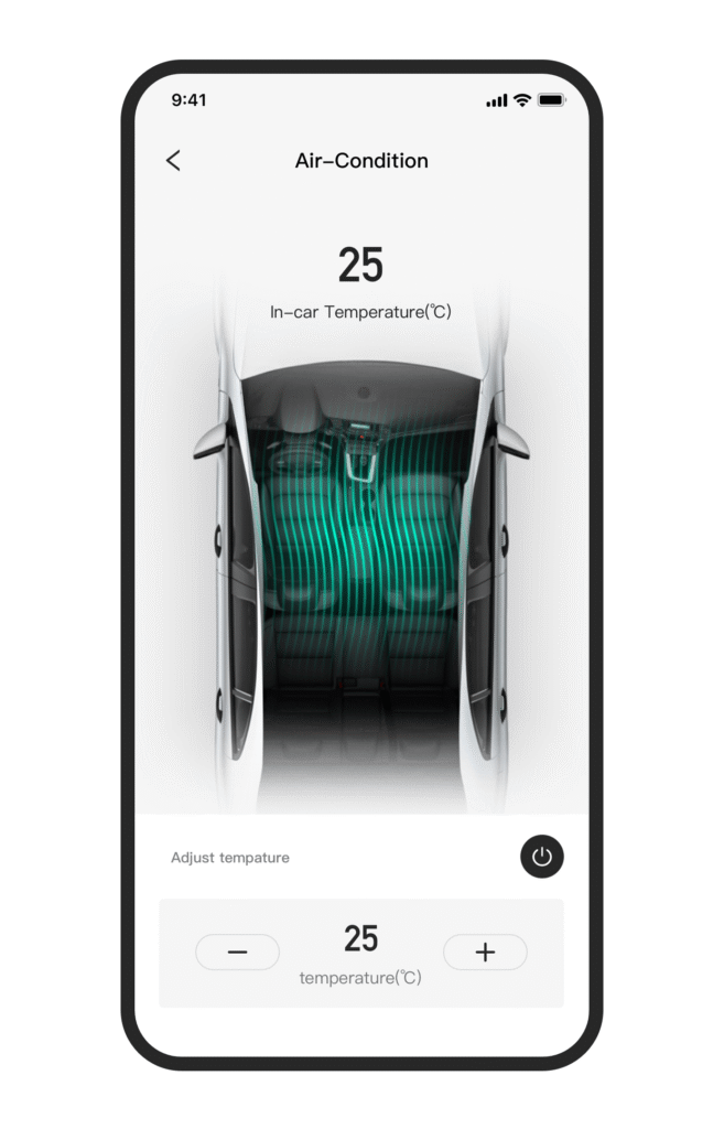 With the air conditioning control feature, you can remotely turn on the air conditioning and adjust seat ventilation and heating functions.